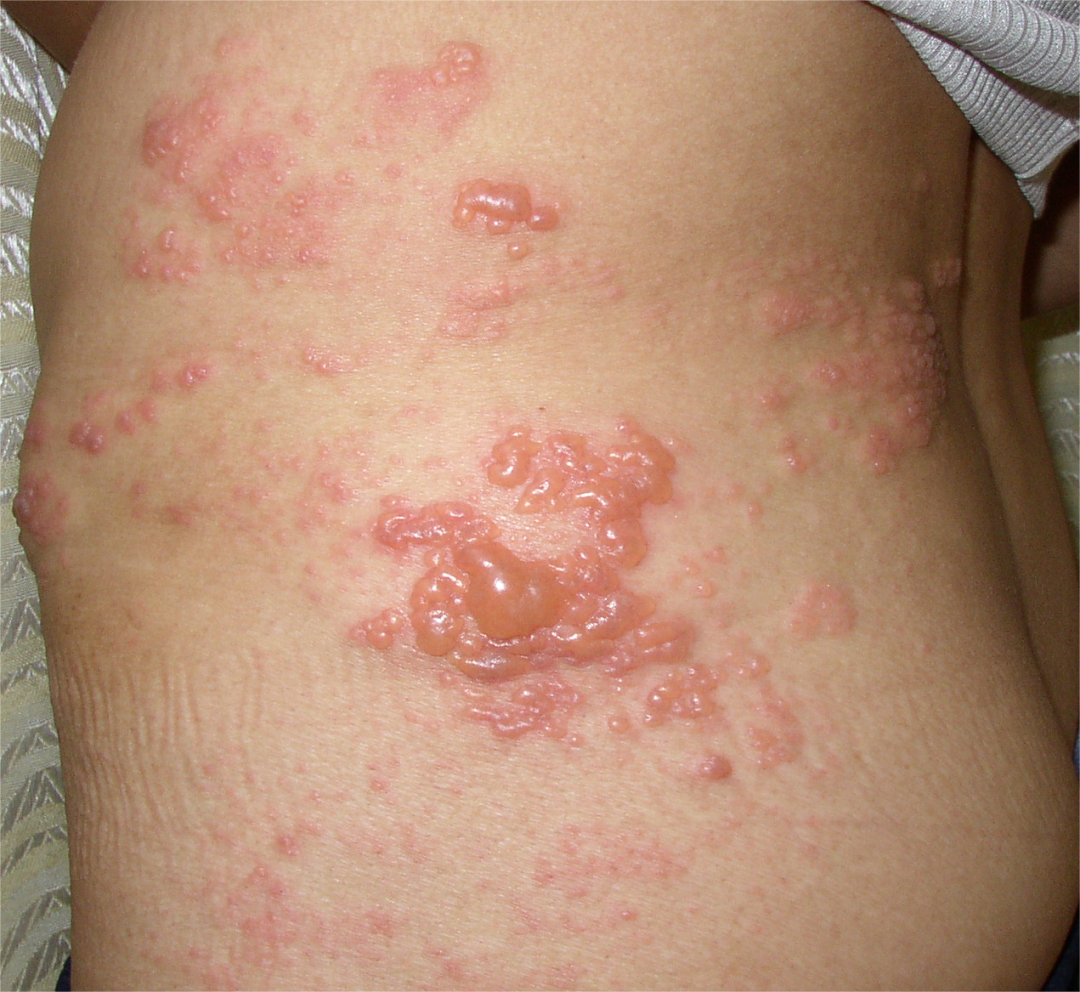 3、部位:人体任何部位都可能出现疱疹,以躯干及面部最常见。