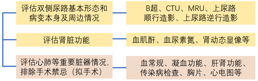 肾积水的症状复杂多变,与肾积水的病因密切相关。需要注意的是,临床上大部分的肾积水患者平时无明显症状。一般而言,肾积水的常见症状主要包括腰痛、血尿、水肿、腹胀、恶心等。腰部、腹部疼痛是肾积水患者最常见的临床症状。在慢性梗阻时往往症状不明显,仅表现为钝痛或酸胀。大多数急性梗阻可出现较明显的腰痛或典型的肾绞痛。上尿路梗阻引起血尿并不常见,但是如果继发结石或感染,则在肾绞痛的同时也会出现血尿。也有部分梗阻的病例表现为间歇性梗阻,患者可以产生血尿。肾积水患者由于尿液集聚在肾脏排不出,患者通常会出现颜面水肿,尤其是眼睑水肿较为明显,也可见于足背部水肿。除此之外,由于尿液排出受阻,还可出现腹痛、腹胀、恶心、呕吐等消化道症状,在大量饮水后上述症状会加重。一般来说,肾积水患者进行辅助检查的目的主要有两个,一是评估双侧上尿路基本形态和病变本身及周边情况,二是评估肾脏的功能。泌尿外科医生根据上述检查结果评估是否需要手术治疗。对于需要进行手术的患者,辅助检查的目的还包括评估患者心肺等重要脏器的情况,排除手术相关禁忌,便于及早做出针对性处理。对于需要进行上尿路修复的肾积水患者,泌尿外科医生一般会开具包括抽血、B超、CT尿路造影(CTU)、上尿路造影等检查。