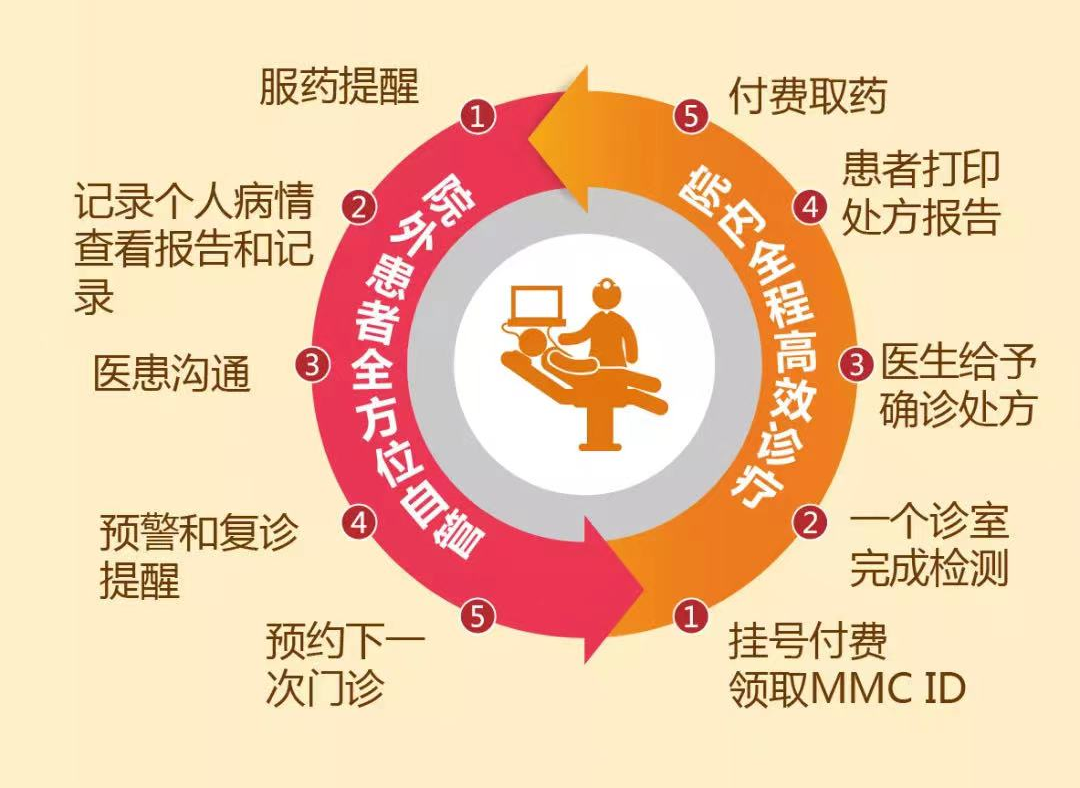 传统的就医模式,患者就诊时需要多次挂号,不断往返于不同的科室。在MMC患者只需挂一次号,就能在MMC中心完成糖尿病健康教育、采血检验、检查项目,大大节省了患者在多个科室间往返的时间和体力,为患者带来轻松、愉快的就医体验。