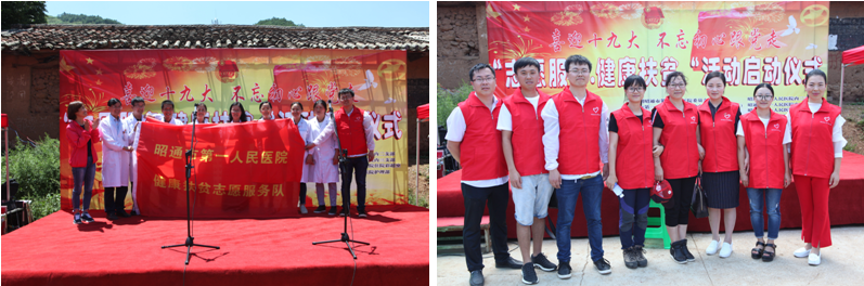 8月27日,为积极响应中央和各级政府“精准扶贫”号召,结合自身行业特点,进一步提高农村地区百姓防病治病意识,增强贫困地区医疗健康水平,切实贯彻落实习总书记在全国卫生与健康大会上“把人民健康放在优先发展战略地位,努力全方位全周期保障人民健康”的重要讲话精神,我院联合昭阳区团委、青岗岭回族彝族乡党委和昭通宾馆到青岗岭回族彝族乡赵家垭口村开展“健康扶贫、志愿服务”启动仪式,并组织开展送医送药送健康大型义诊活动。院党委组织医院团委、行政七支部、急诊支部、眼科支部、放射支部、麻醉ICU支部、内二支部、内三支部、住院彩超室、护理部共计80余名医护人员及志愿服务者参加义诊活动。