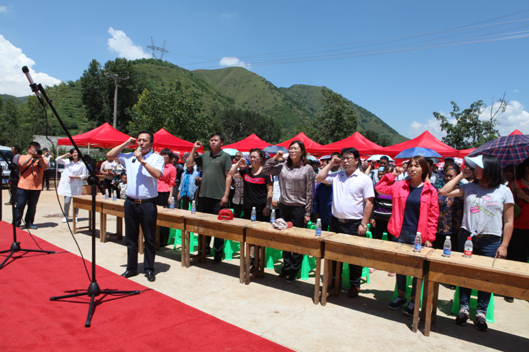 义诊前,党员同志重温了入党誓词,为医院健康扶贫志愿服务队举行授旗仪式。