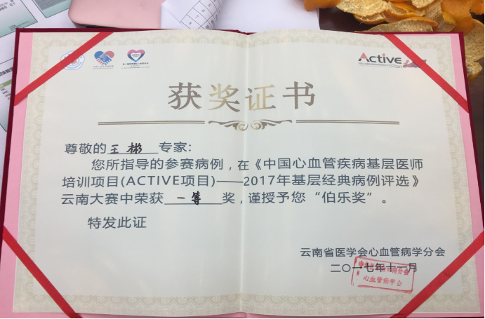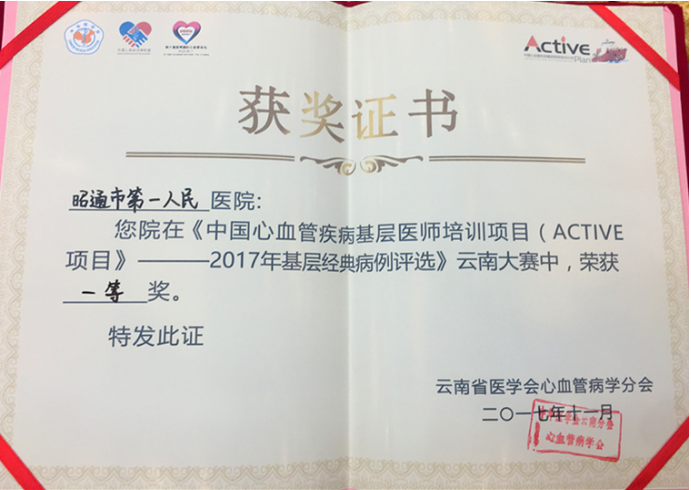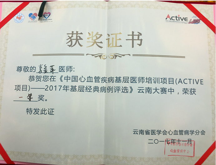 2017年11月24日,《中国心血管疾病基层医师培训项目——云南省基层经典病例大赛》于大理市龙山行政区会议室隆重举行。我院荣获第一名佳绩。
