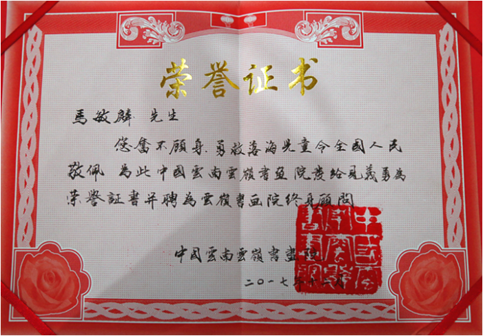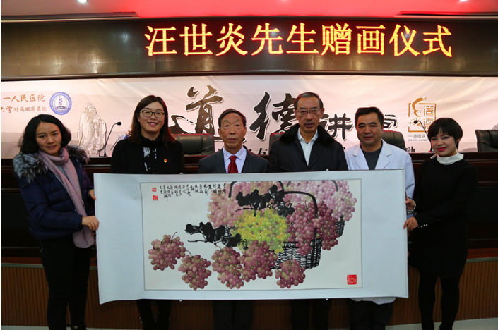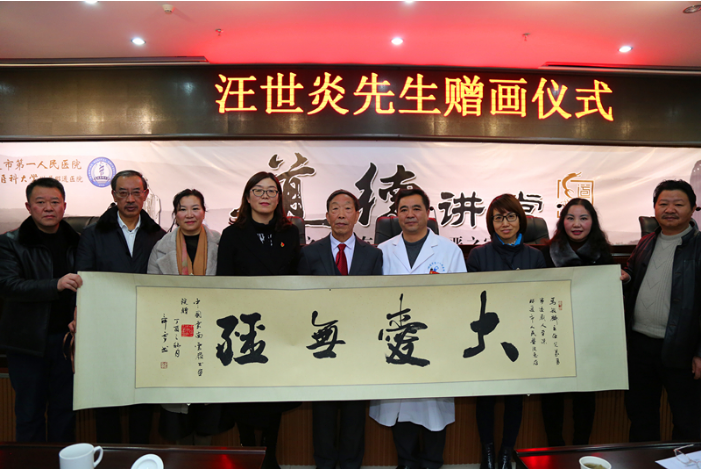 报告会最后,云南云岭书画院院长、中国书法家协会会员,中国书法家协会理事,世界遗产杯金奖获得者汪世炎先生为医院及马敏麟同志赠画,并颁发证书。