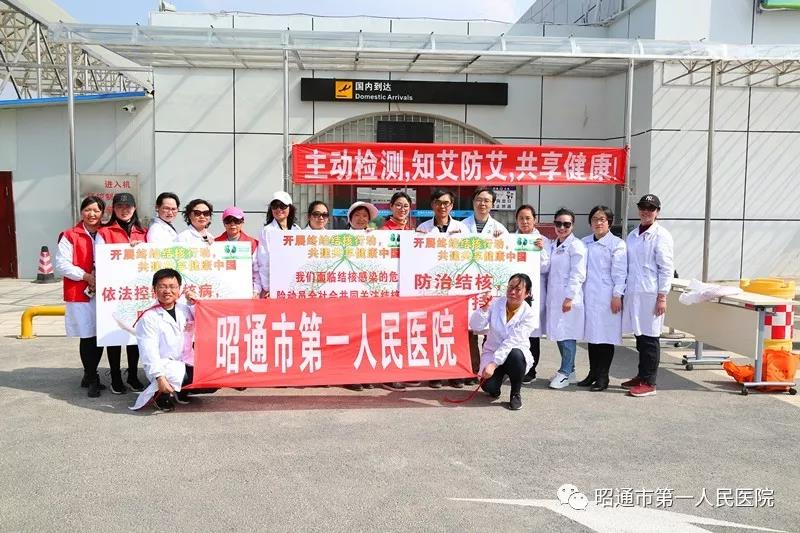 为普及结核病防治知识,遏制结核病流行,同时在人群集中场所宣传“防艾”知识,倡导健康生活方式,3月27日, 我院感染病科联合行政一支部、行政三支部、行政八支部、内五支部、团委、脑血管科等部门40余名医疗志愿者到昭通机场为旅客开展主题为“开展终结结核行动,共享共创健康中国”的健康科普志愿服务活动。