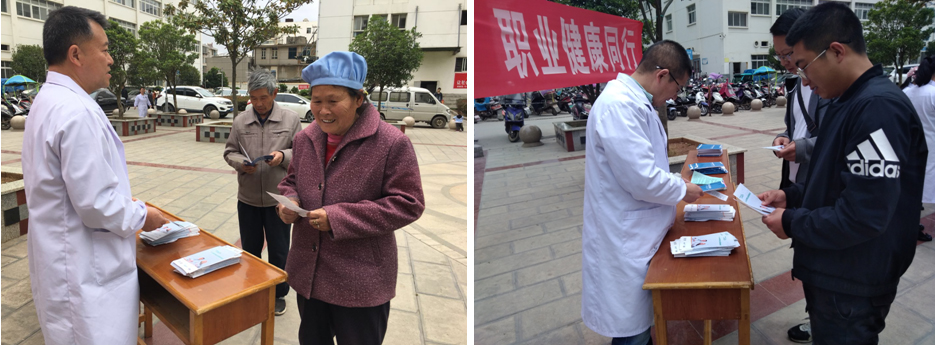 我院党委委员、副院长熊勇同志带领医护人员在住院部大厅外发放职业病防治宣传手册、宣传摘页,张贴宣传画普及职业健康知识,营造全社会关心关注支持职业病防治的浓厚氛围,保障劳动者的职业健康权益。