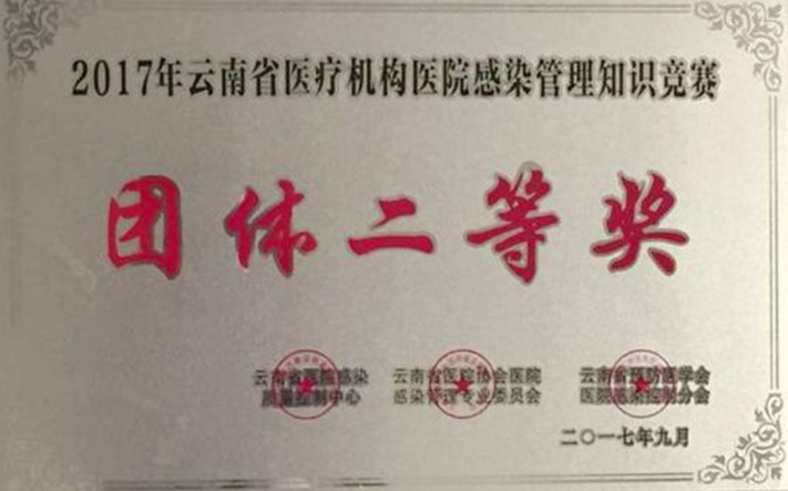 2017年9月28-29日,全省医疗机构医院感染管理知识竞赛决赛在昆明举行。在此之前,我院领导高度重视,精心组织,于8月11日选派队伍参加了全市的比赛,在全市组织开展医疗机构感染管理知识竞赛中我院荣获团体一等奖,从全市14支代表队42名选手中选出的马瑞、龚贤满两位选手代表昭通市参加云南省医院感染管理质量控制中心、云南省医院协会医院感染管理专业委员会和云南省预防医学会医院感染控制分会联合主办的2017年云南省医疗机构医院感染管理知识竞赛活动,全省有17支代表队51名选手参加竞赛,在初赛中我院马瑞、龚贤满等奋勇争先、积极向上以团体第一名的优异成绩进入决赛,决赛中昭通市代表队个个是精神抖擞,意气风发,信心百倍,志在必得,经过必答题、抢答题、风险题等环节的激烈角逐和斗智斗勇,最终以第二名的成绩荣获“团体二等奖”。马瑞荣获个人二等奖、龚贤满荣获个人三等奖的佳绩,为我市赢得了荣誉。