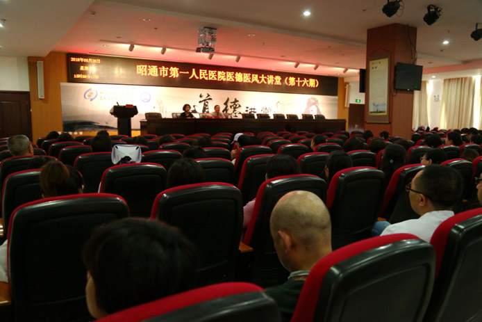 为加强我院医德医风建设、提升医院服务质量、提高患者满意度。6月26日,我院举办第十六期医德医风大讲堂活动,医院各科室主任、护士长、党支部书记、副书记、年轻医生、护士及医技部门职工共计400余人参加了会议,医院党委副书记、纪委书记杨礼聪主持会议。