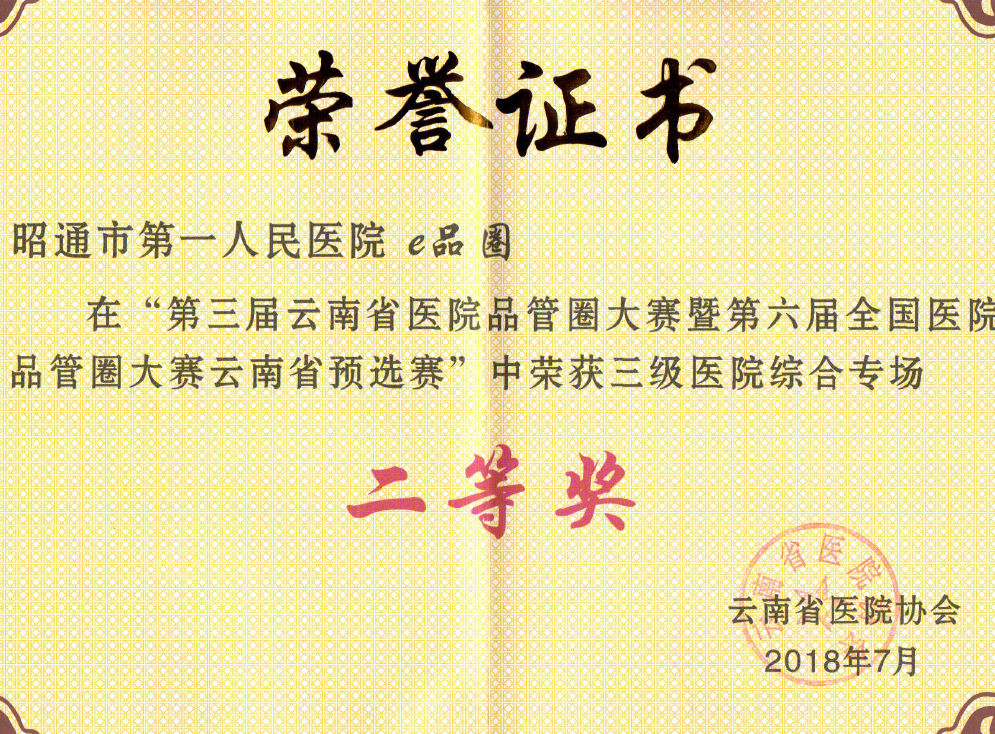 2018年7月20日—21日,由中国医院品质管理联盟、云南省卫生和计划生育委员会指导, 云南省医院协会主办、云南省第二人民医院和云南省医院品质管理联盟承办的第三届云南省医院“品管圈”大赛暨第六届全国医院“品管圈”大赛云南省预选赛在昆明隆重举行。我院参赛的2个圈组,在此次比赛中取得优异成绩,医院创建办的“e品圈”荣获三级医院综合专场二等奖,并由云南省医院品质管理联盟推荐参加第六届全国品管大赛;普一科的“时上圈”荣获三级医院护理专场优秀奖。